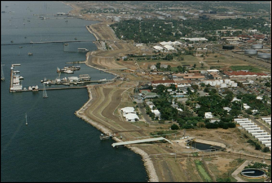 Fue el 28 de octubre de 1926, cuando la empresa Shell colocó las primeras barreras para contener las aguas del Lago de Maracaibo, dando inicio a lo que hoy en día es el SPCI. Las primeras barreras de madera fueron instaladas en el área de Lagunillas. Gradualmente se fue ampliando al norte y sur, y se fueron utilizando materiales más resistentes como piedras y tierra. Con este dique se ganó terreno al Lago de Maracaibo y se eliminaron las frecuentes inundaciones naturales que se registraban en estas zonas con características de humedales. De esta manera se facilitó la instalación de infraestructura petrolera en la región.